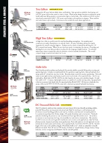 STAINLESS STEEL & BRONZE model Tote Lifters HAND PUMP OR 12V DC 26¾" x 45" 3½" to 31½" 2,000 lb. (POUND)